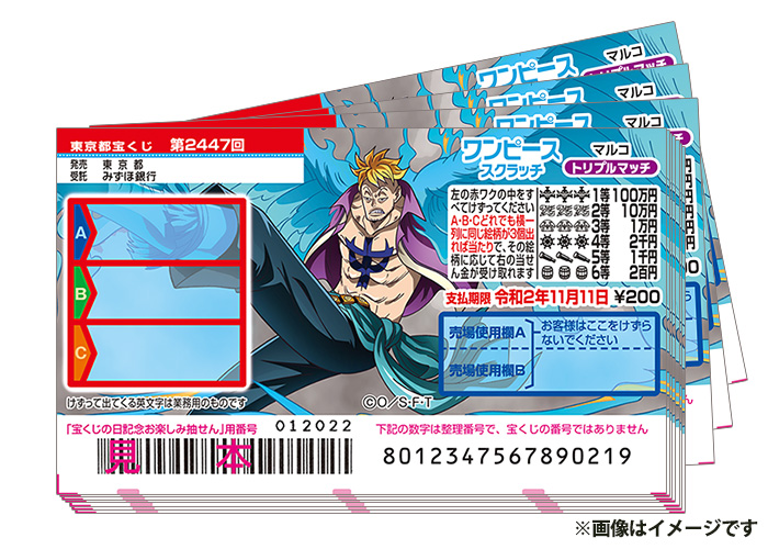 Safety How works Test new features Press Copyright Contact us Creatorsスクラッチの法則3 残り福は本当に福を呼ぶ! 残り福という響きは 「ただの売れ残りでしょ」 と感じてしまいますが、これも実際体験したお話で、残り2袋で片方を購入してみたら10万円が当たりました。 他の販売員も残ってしまった別のスクラッチを数ワンピーススクラッチの買い方・当選方法 ワンピーススクラッチの購入は、各地域の宝くじ販売窓口から。 購入したら窓口近くでスクラッチしてしまった方が、当たった時の換金が簡単です。 ワンピーススクラッチには4つのタイプが用意されています。